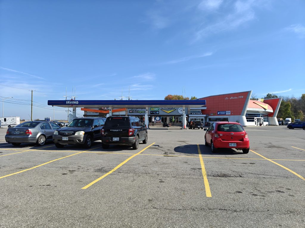 Évidemment que je tombe dans une voiture de Québécois. Ça veut dire ce que ça veut dire : je suis le seul touriste, et on se fout bien de ma gueule. Je prends tout en photo et je me justifie en disant que c’est pour le blog. C’est à moitié vrai. Je veux dire, regardez donc le charme inégalable des aires d’autoroute…
