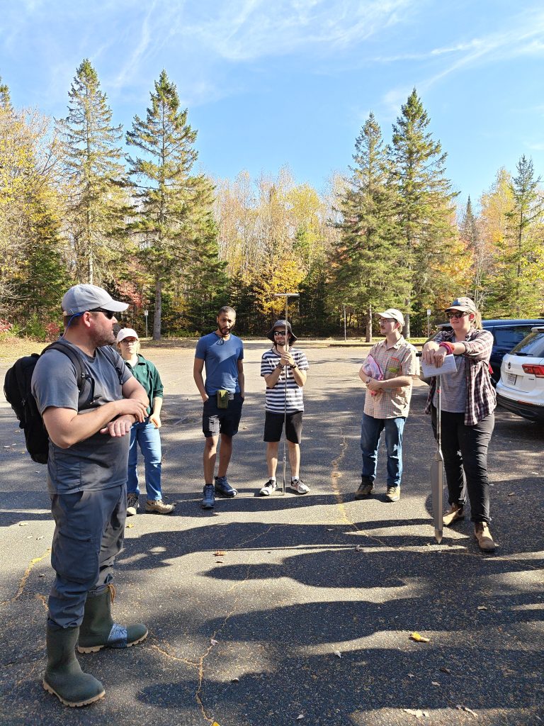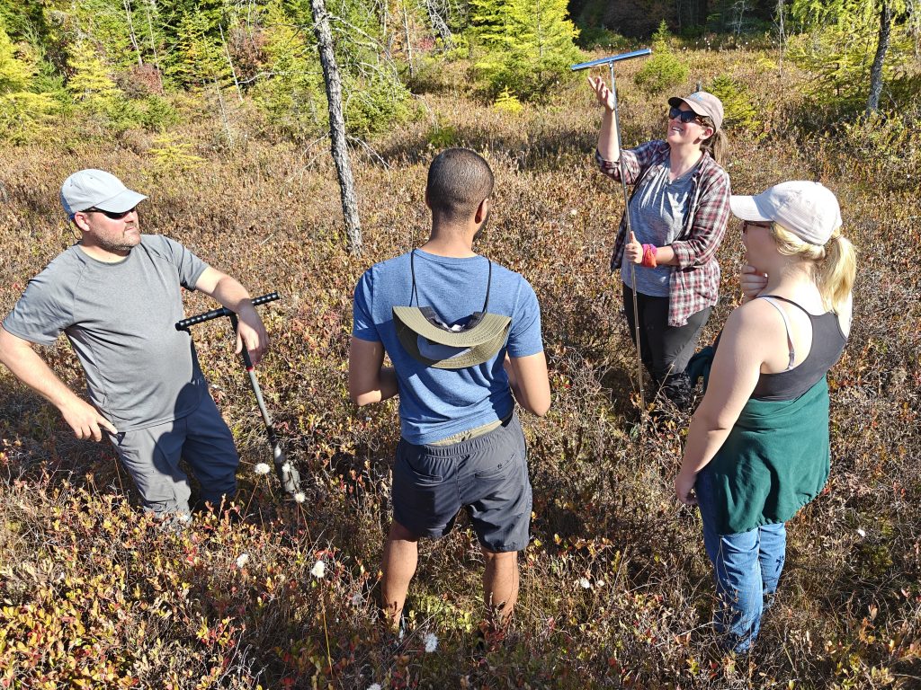 Ressaisissons nous. L’objectif de la journée, c’est la visite d’une tourbière. Passionnant dit comme ca. C’est la passion et le sujet de recherche de Nicole, notre professeure à droite de la photo. L’objectif de cette sortie de quatre jours sur le terrain est de nous introduire aux méthodes de la recherche en géographie physique. On va donc essentiellement passer notre temps dehors à toucher des plantes et des cailloux, sans se prendre le chou.
