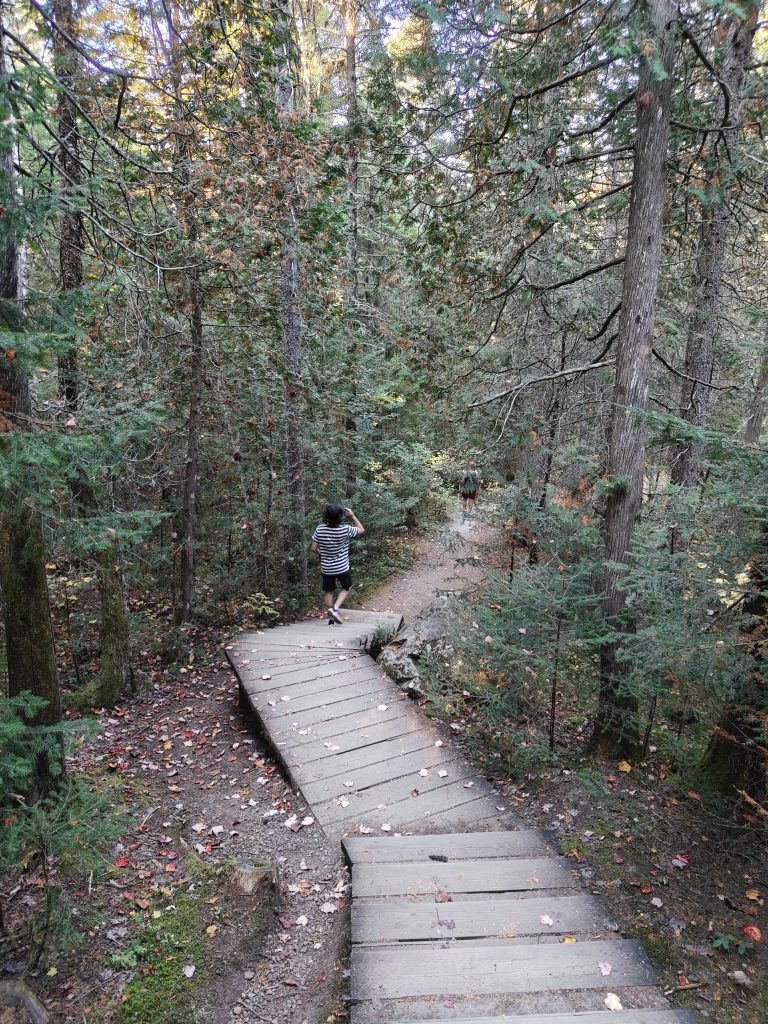Un pont en bois mène de l’autre côté, là où le lac d’amincit. Je l’emprunte et y retrouve un ami, avec qui je décide de marcher sous le bois. Je découvre que le lac n’a pas la forme d’un coeur, ce qui ne m’a absolument pas déçu. Quelle importance que le lac ait la forme d’un coeur ? Il est très beau, même difforme.