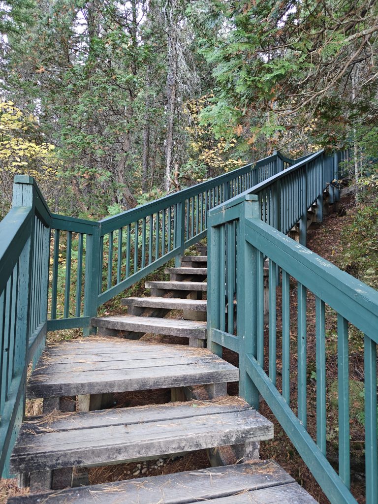 Le soleil se couche et il est temps de reprendre nos chars. Avant de se diriger vers l’auberge, on nous propose d’aller voir une vue depuis un belvédère situé à quelques minutes seulement. Certains préfèrent prendre ce temps pour aller se baigner, mais la vue qu’on s’apprête à voir vaut cent fois plus qu’une pauvre baignade.