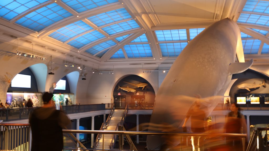 On entre dans cette grande pièce, parmi tant d’autres,. Au centre : une baleine, immense. On se couche au sol juste au dessous, ensemble avec des dizaines d’autres visiteurs. On ressent un vertige face au gigantisme des créatures qui sillonnent aujourd’hui les océans. C’est rare que je frissonne dans un musée.