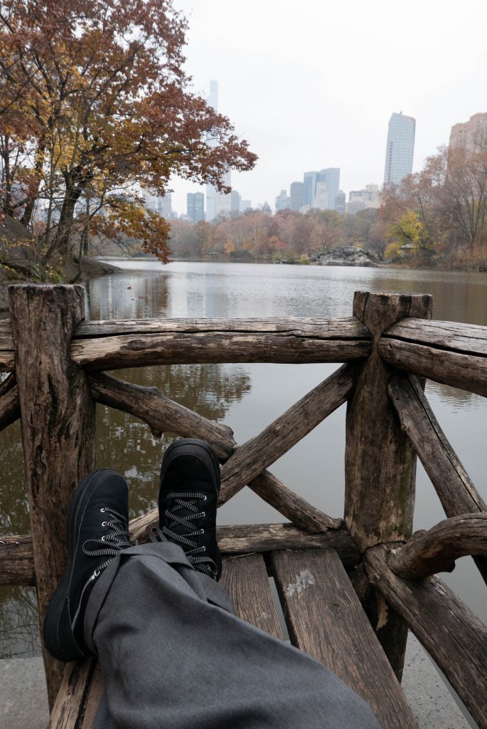 Après avoir lentement déambulé dans le parc, je m’assois flâner face au reflet de la skyline se dessinant dans un lac. Sérieusement, jamais ils se lèvent ?