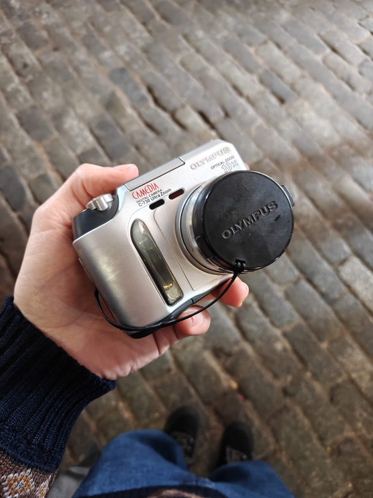 Je trouve cette vieillerie à un stand. C’est le seul qui n’a rien de cassé au premier abord parmi sa fratrie nombreuse couchée sur la table (j’ai compris plus tard pourquoi il a fini là…). Je sens que je vais bien m’amuser avec. Vois si tu arrives à trouver les photos que j’ai prises avec ! Pour ce qui est des vidéos, ça sera pas compliqué, crois-moi. Et ouais… Sur le moment je savais pas qu’il fallait activer le micro manuellement.
