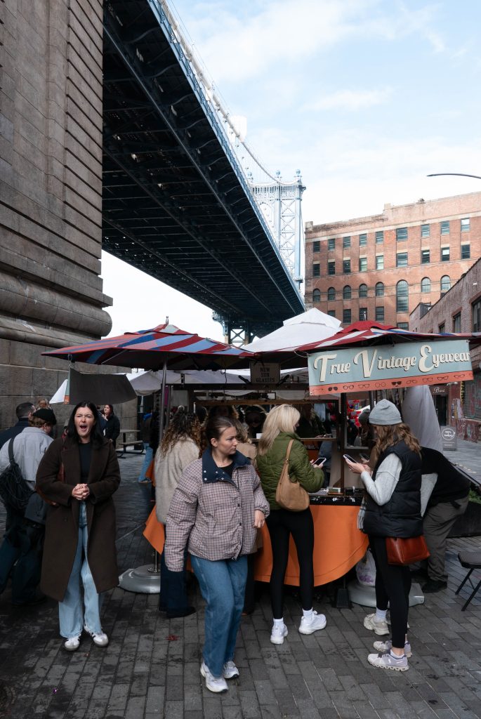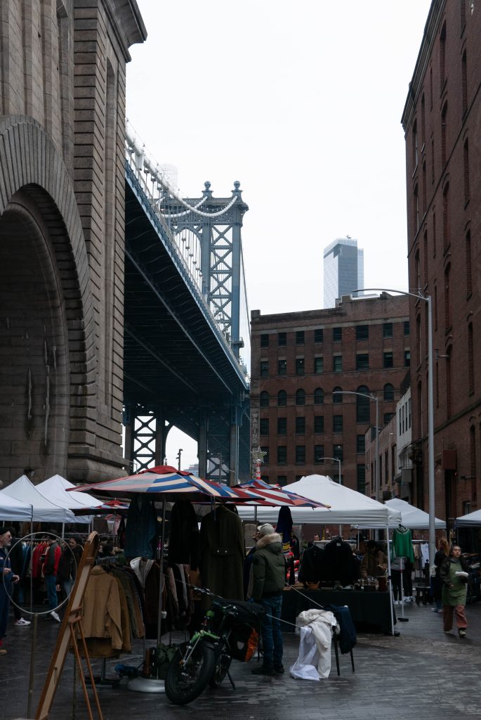 J’entends une voix qui m’appelle depuis l’autre côté de la rue sur mon chemin vers le marché : c’est les autres ! Le Brooklyn Flea Market étend ses étals sous le pont de Manhattan. Vous devinez bien quel genre de produits on y trouve. C’est quand même le fun, puis la vue sur le pont est folle.