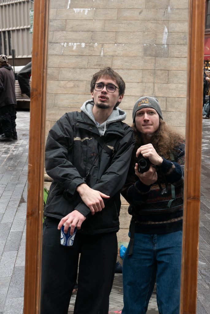 Tanné de la foule, je marche jusqu’à la rivière. Un semblant de ciel bleu se détache au-dessus de la skyline. Un couple me demande de les prendre en photo. C’est ça de toujours avoir un appareil photo sur soi, on me considère compétent. J’ai toujours trouvé drôle l’idée de prendre la photo souvenir de quelqu’un, qui se référera à elle toute sa vie pour se remémorer son voyage. Ça devait faire la job.