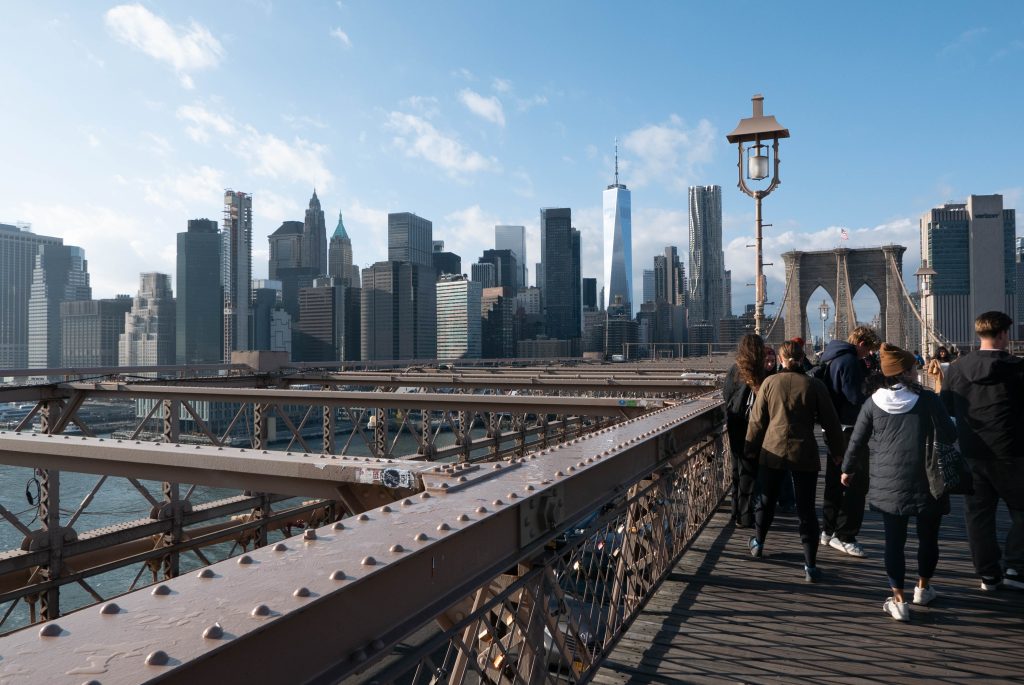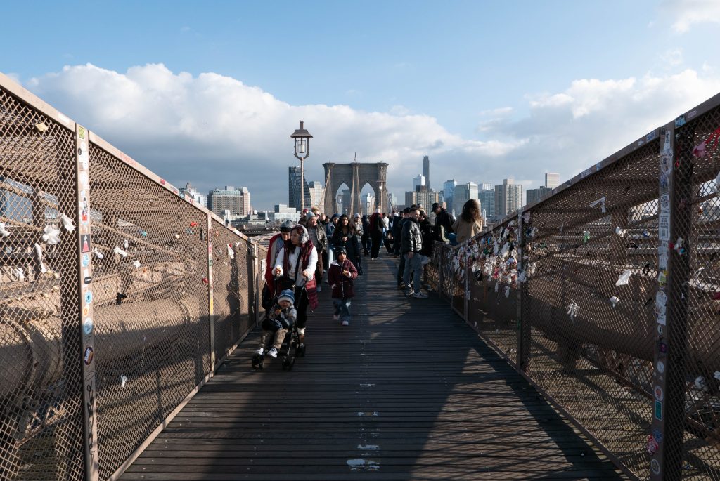 Parmi la liste des choses qu’on tenait absolument à faire, il y avait la traversée du pont de Brooklyn. On s’attendait absolument pas à ce que ça soit si vivant ! Il y a du monde qui marche, qui s’arrête pour regarder la vue, discuter.