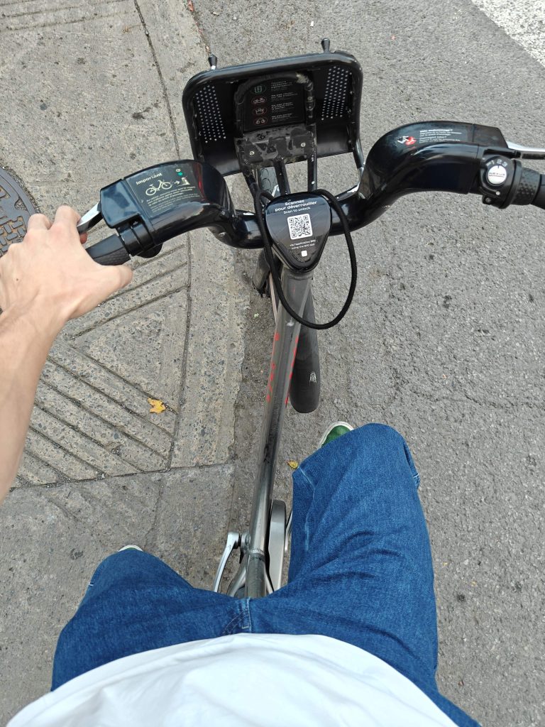 Ce qui ne devait être qu’un trajet purement utilitaire pour aller chercher une plante trouvée sur la marketplace Facebook s’est transformé en un tour en vélo au coucher du soleil. J’ai trouvé une très belle plante – une fleure de lune – à un bon prix quelque jours plus tôt. Le vendeur me propose de passer ce soir. Je sors pour prendre un bixi (l’équivalent d’un velib) mais à peine je m’approche de la borne qu’un employé de l’entreprise scanne sa carte pour sortir un vélo et me le donner. En gros, j’ai maintenant la liberté d’aller où je veux, aussi longtemps que je veux, sans avoir à dépenser un centime de ma poche. Ils sont sympas les québécois.