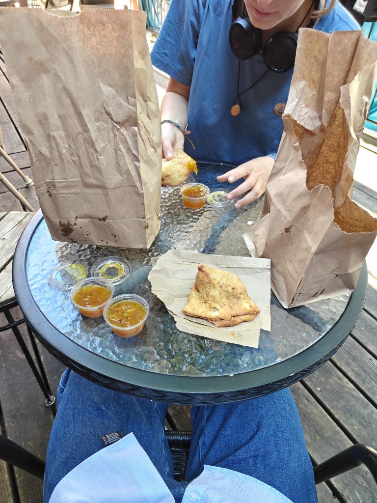 Je savais avant de partir qu’elle arriverait une semaine après moi. Alors le lendemain de son arrivée, on a décidé de se retrouver à Eva B (la fripe dont j’ai parlé il y a quelques semaines déjà) pour manger un bout et regarder ce qui s’y vend. La nourriture était épicée, mais ca faisait du bien de retrouver un peu de familiarité.