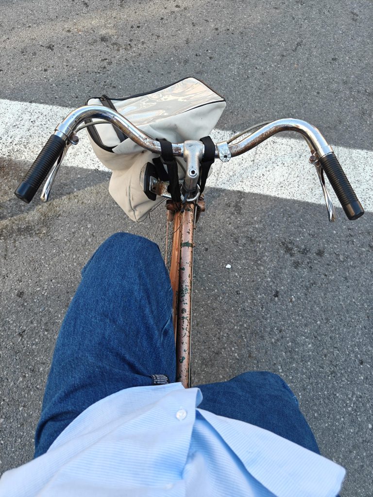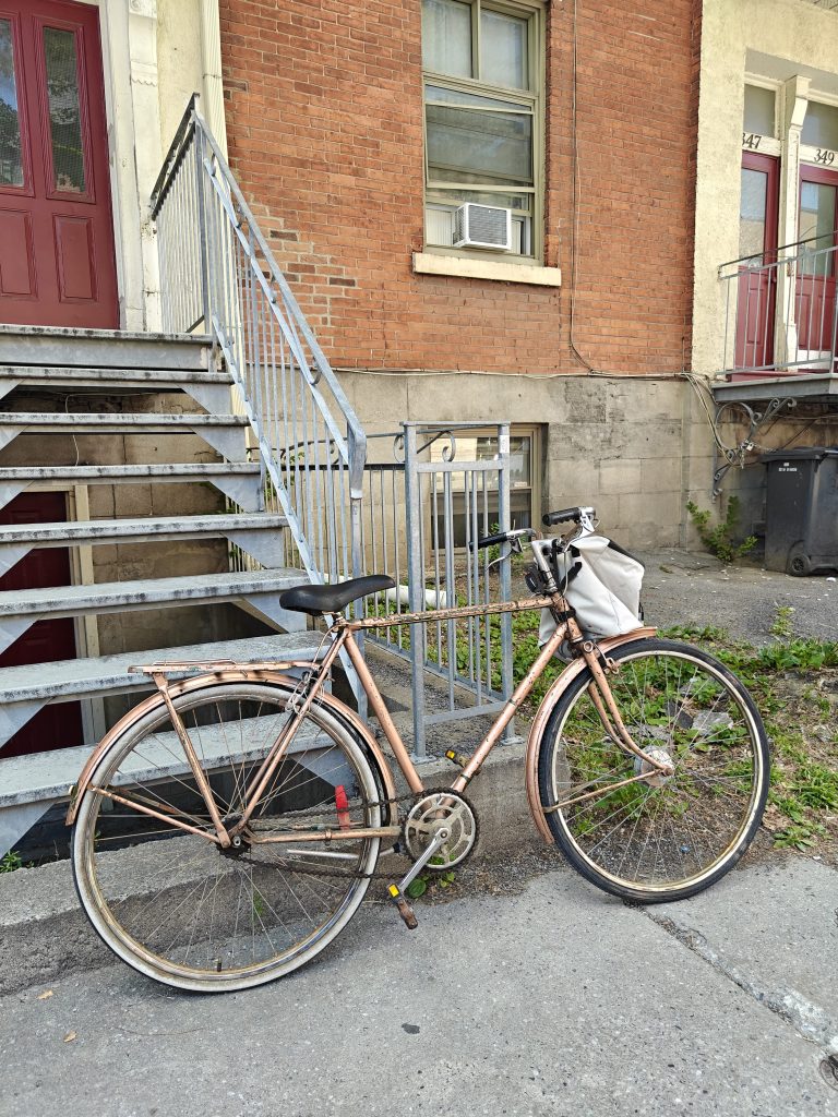 La balade vélo qui s’est substitué à un simple allé retour pour l’achat d’une plante il y a quelques jours de cela m’a fait réaliser ce à quel point je voulais un vélo. Alors j’ai cherché sans relâche ma nouvelle monture sur la marketplace Facebook. Je suis alors tombé sur un vieux vélo de ville repeint à la bombe vendu pour trois fois rien.