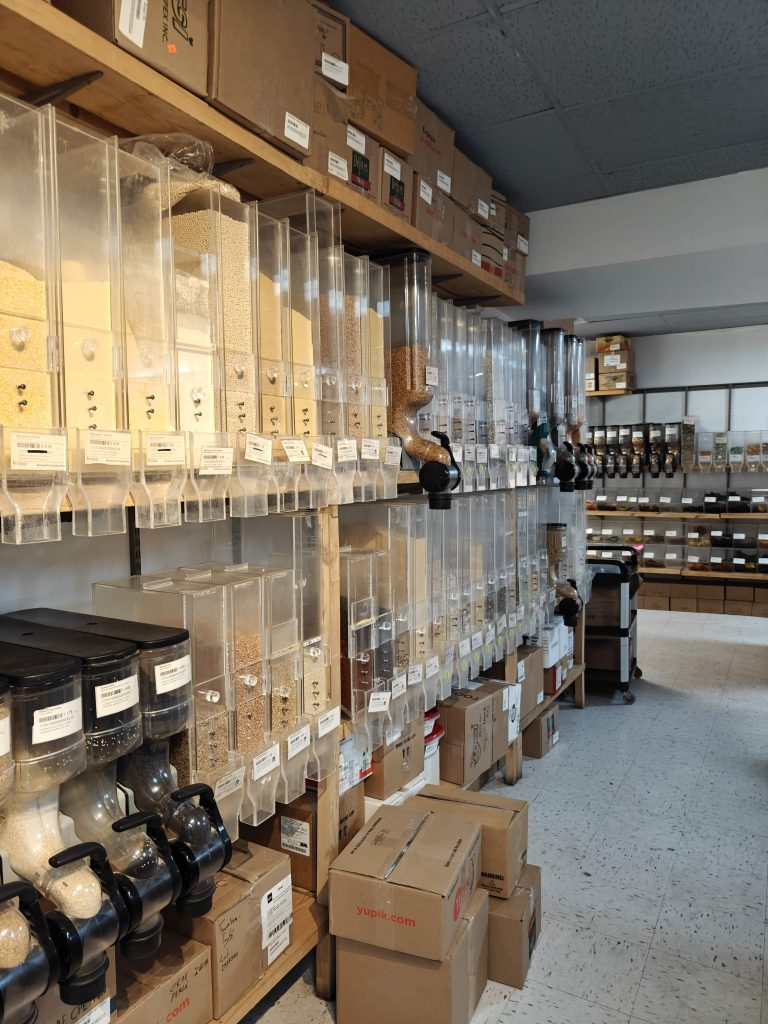 On commence par remonter le boulevard Saint Laurent (le même sur lequel s’est déroulé le défilé de corgis) pour jeter un œil à une adresse repérée avant mon départ de Grenoble : Frenco. Frenco est une épicerie spécialisée dans le vrac et le biologique. Evidement, tout est cher. On se réjouit quand même de la présence d’un tel commerce dans un pays visiblement peu inquiet de la qualité de sa bouffe. En même temps, quand ta spécialité c’est du fromage sur des frites…